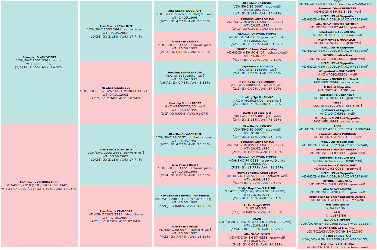 Akela came to our kennel as a studfee pup. A fine boned female with a racy body, resembling a sprint type. She started quickly to run lead, but needed some time to become self confident at races. In 2016 she ran partly co-lead at the International Scandinavian Stage Race, where the team was highest placing Siberian team.